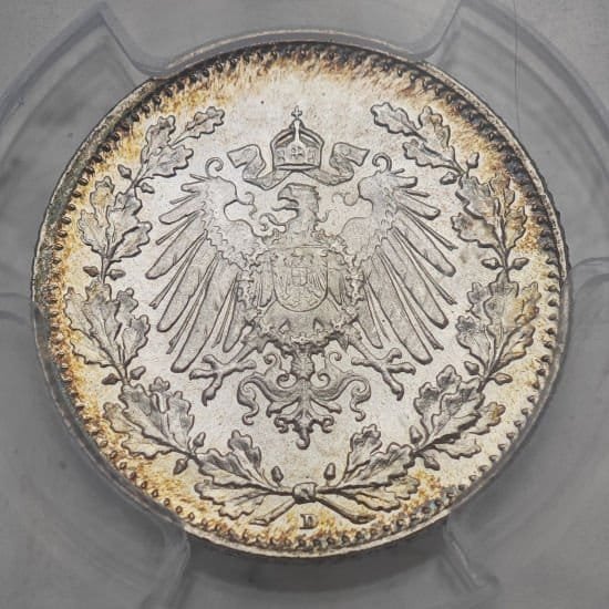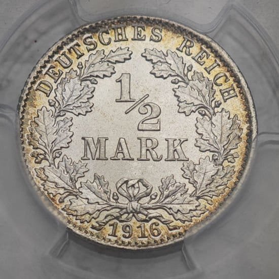 GERMANY 1/2 mark 1916D / Empire / Silver / PCGS MS67