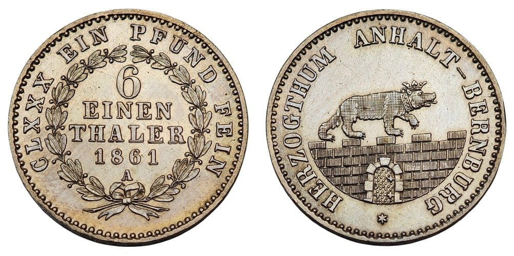 GERMANY 1/6 thaler 1861A / Anhalt-Bernburg / Silver / UNC