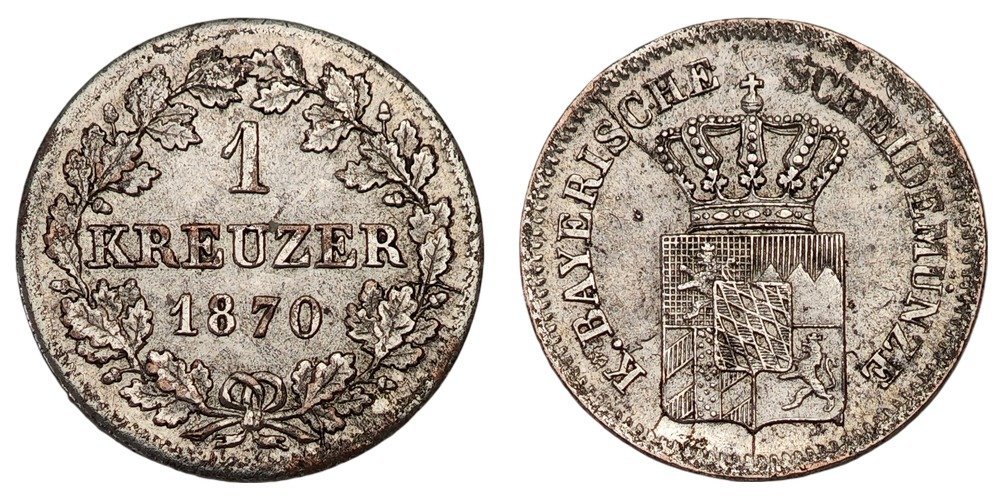 GERMANY 1 kreuzer 1870 / Bavaria / Silver / VF+