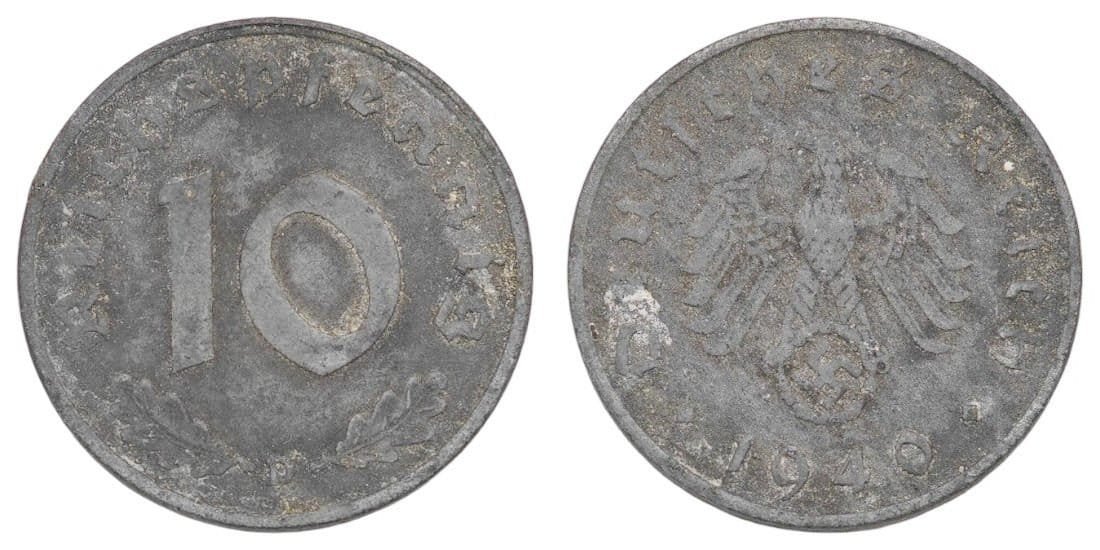 GERMANY 10 reichspfennig 1940D / 3rd Reich / WWII issue / VF-