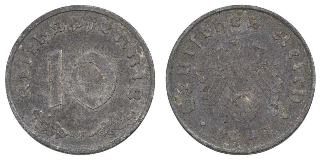 GERMANY 10 reichspfennig 1941F / 3rd Reich / WWII issue / VF