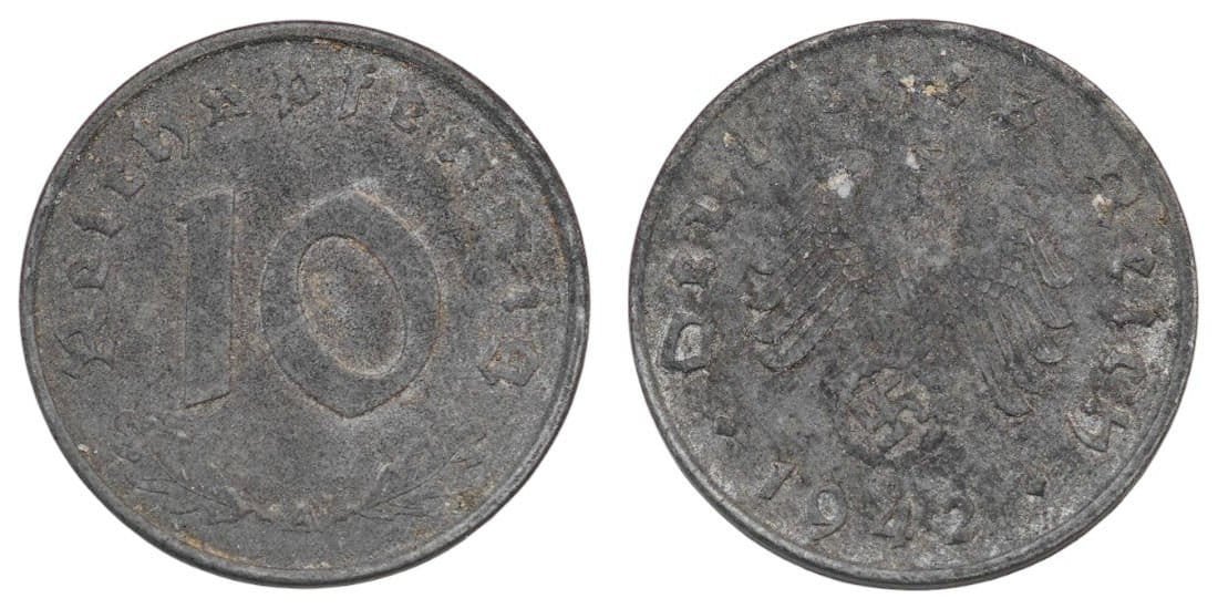 GERMANY 10 reichspfennig 1942A / 3rd Reich / WWII issue / VF