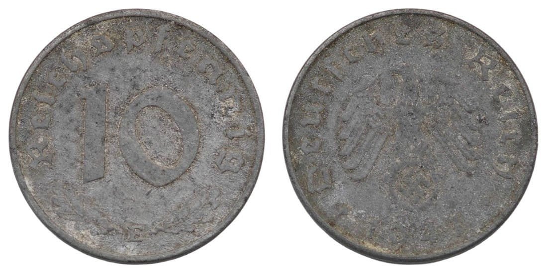 GERMANY 10 reichspfennig 1942E / 3rd Reich / WWII issue / VF
