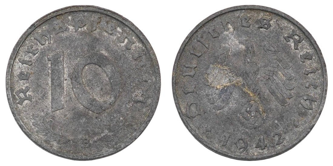 GERMANY 10 reichspfennig 1942E / 3rd Reich / WWII issue / VF