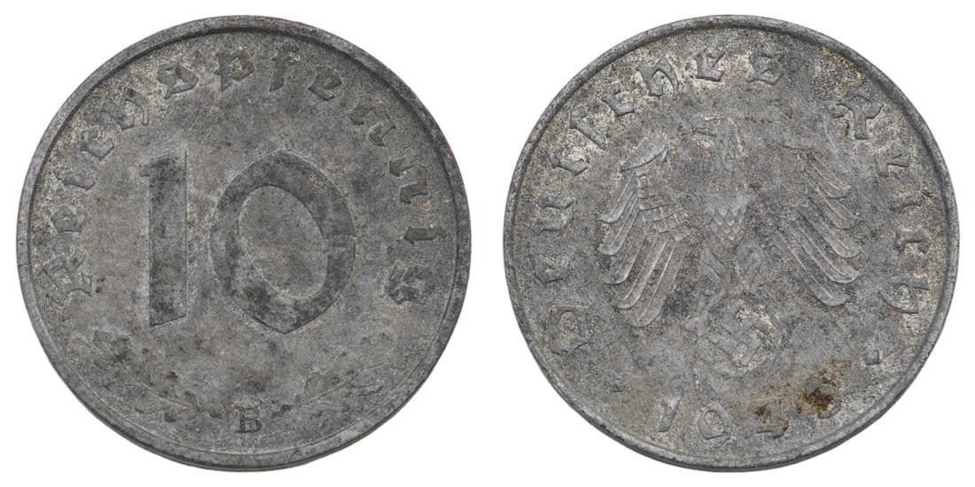GERMANY 10 reichspfennig 1943B / 3rd Reich / WWII issue / VF