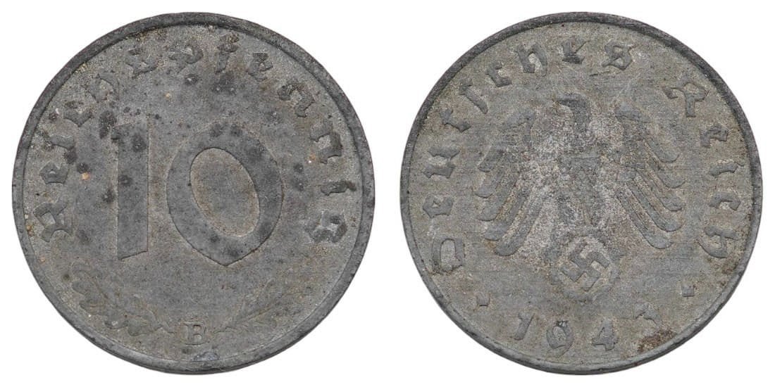 GERMANY 10 reichspfennig 1943B / 3rd Reich / WWII issue / VF