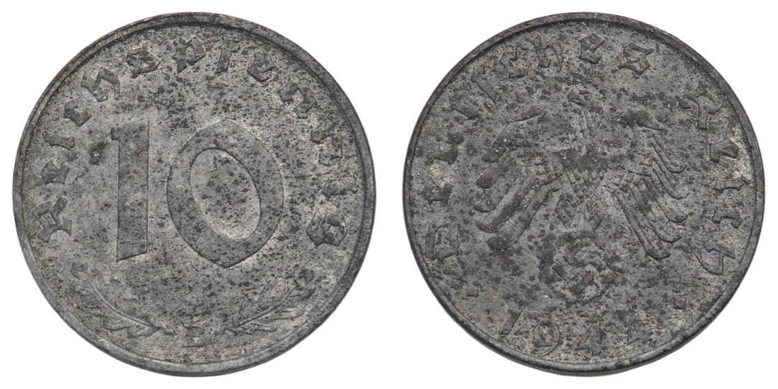 GERMANY 10 reichspfennig 1944B / 3rd Reich / WWII issue / VF
