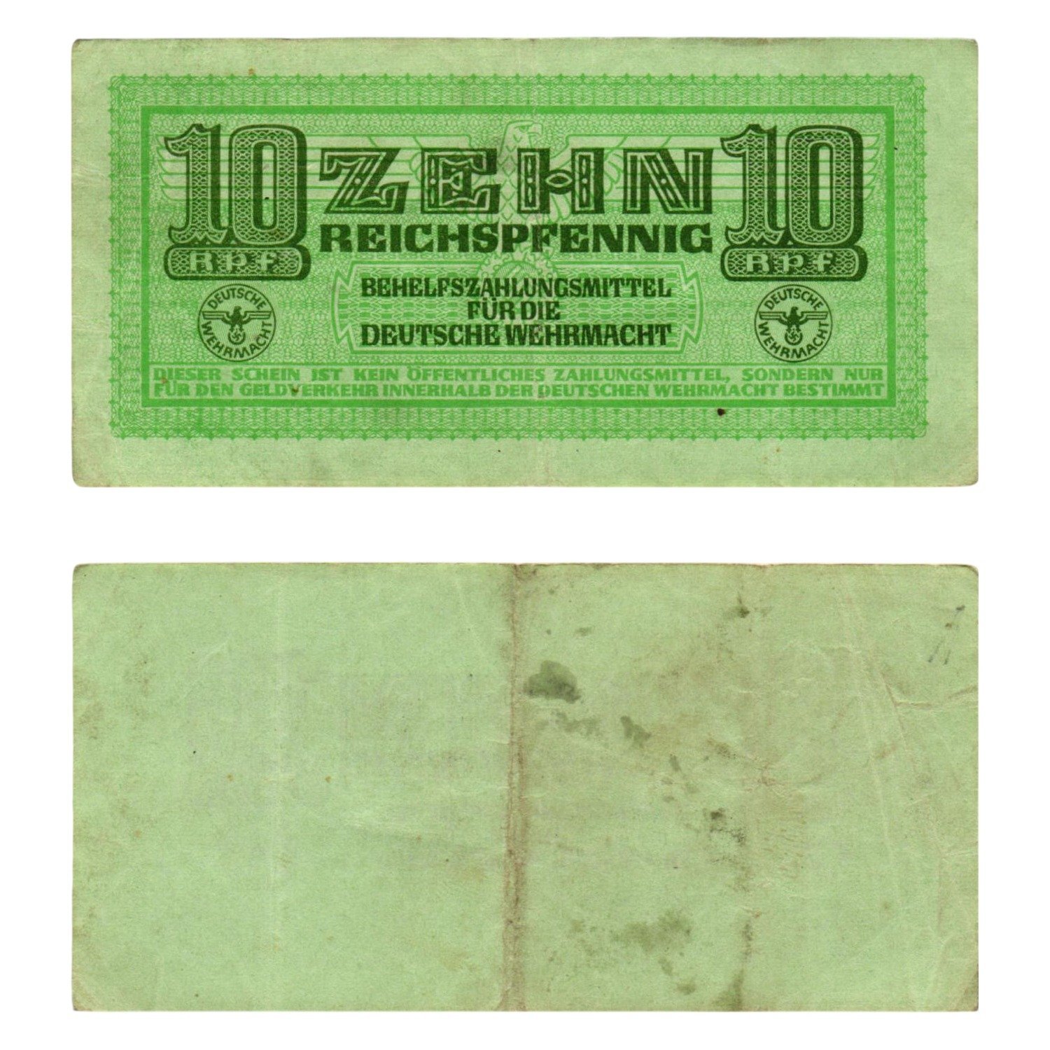 GERMANY 10 reichspfennig ND(1942) / 3rd Reich / Deutsche Wehrmacht / WWII Military Issue / VF-