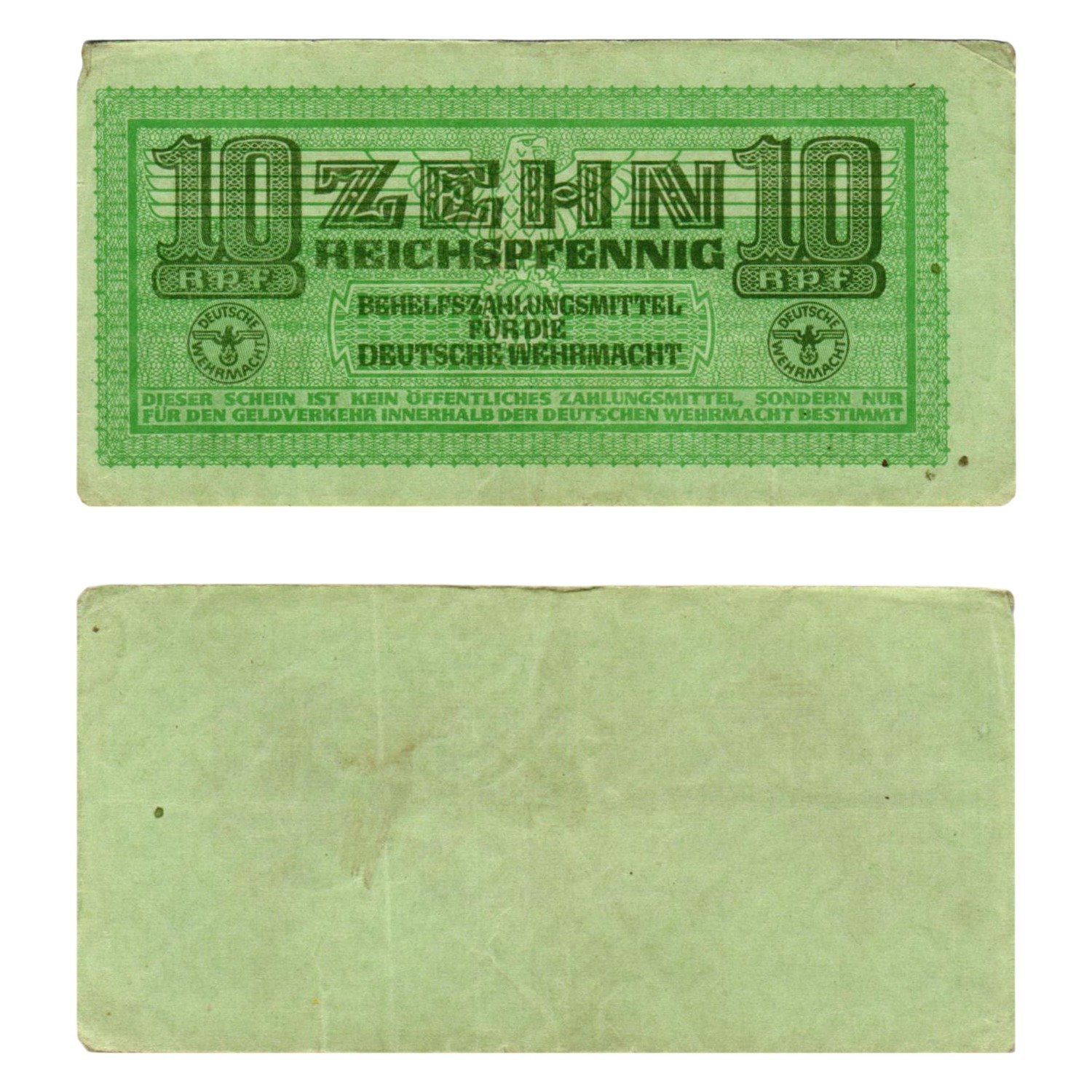 GERMANY 10 reichspfennig ND(1942) / 3rd Reich / Deutsche Wehrmacht / WWII Military Issue / VF