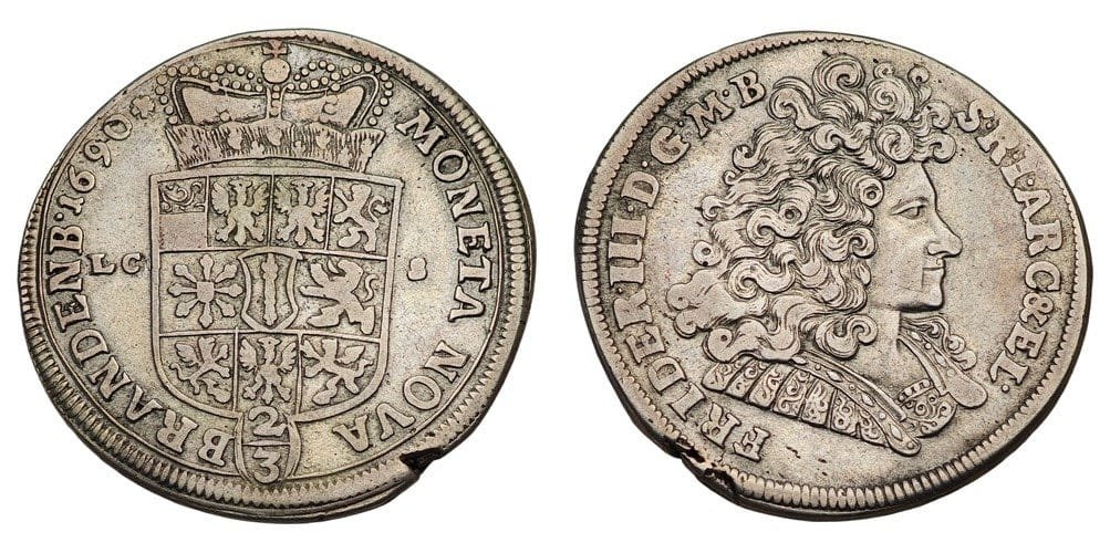 GERMANY 2/3 thaler 1690 / Brandenburg-Prussia / Silver / VF-