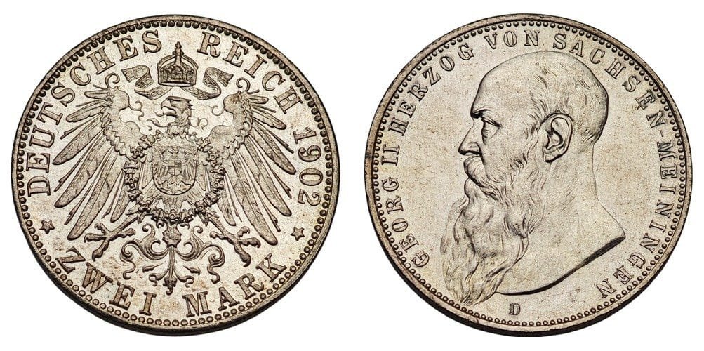 GERMANY 2 mark 1902D / Saxony-Meiningen / Silver / UNC