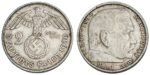 GERMANY 2 reichsmark 1939B / 3rd Reich / Paul von Hindenburg / Silver / VF
