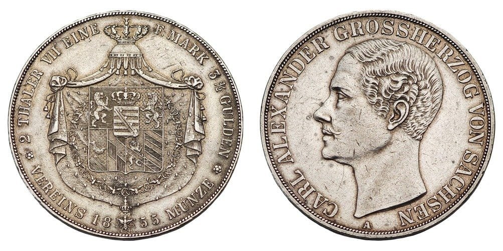 GERMANY 2 thaler 1855A / Saxony / Silver / XF+