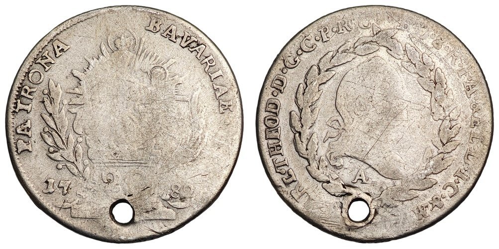GERMANY 20 kreuzer 1782 / Bavaria / Silver / holed / VG
