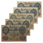 GERMANY 20 mark / Empire / 5 pcs. Banknotes lot / lower grades