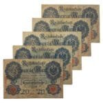 GERMANY 20 mark / Empire / 5 pcs. Banknotes lot / lower grades