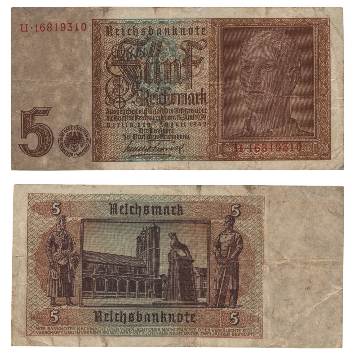 GERMANY 5 reichsmark 1942 / 3rd Reich / WWII issue / VF