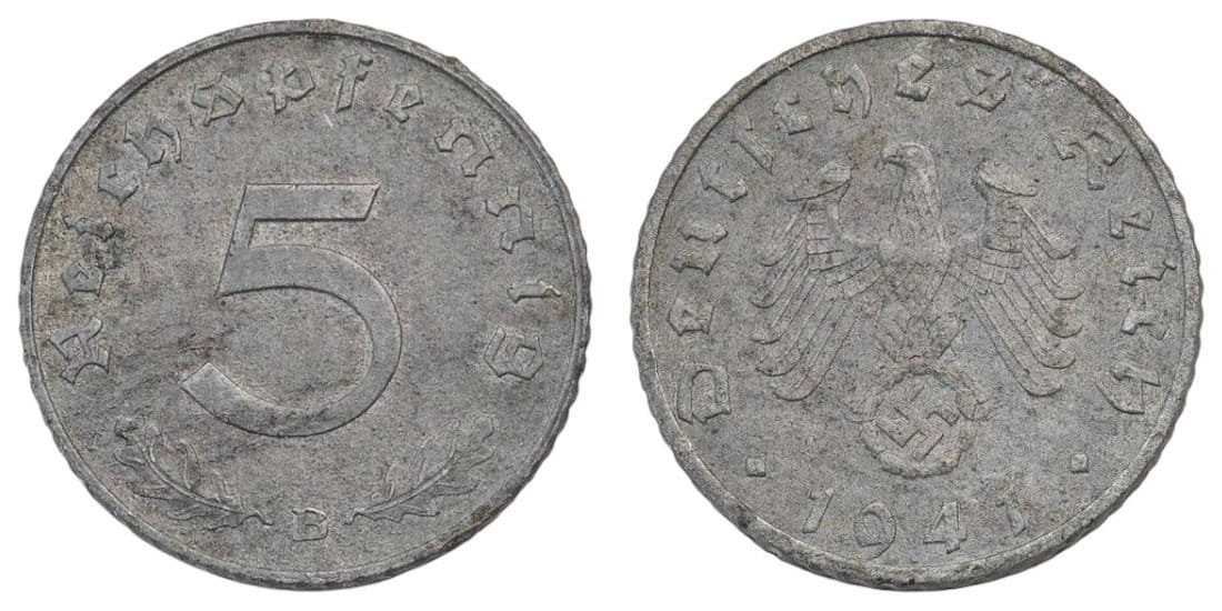 GERMANY 5 reichspfennig 1941B / 3rd Reich / WWII issue / VF