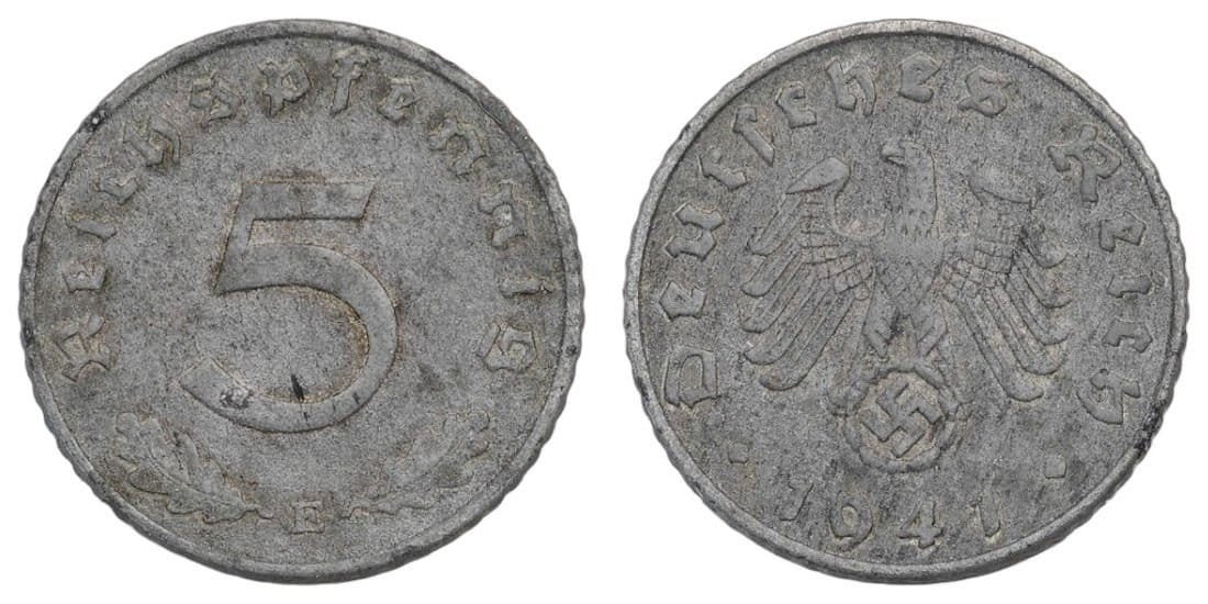 GERMANY 5 reichspfennig 1941E / 3rd Reich / WWII issue / VF