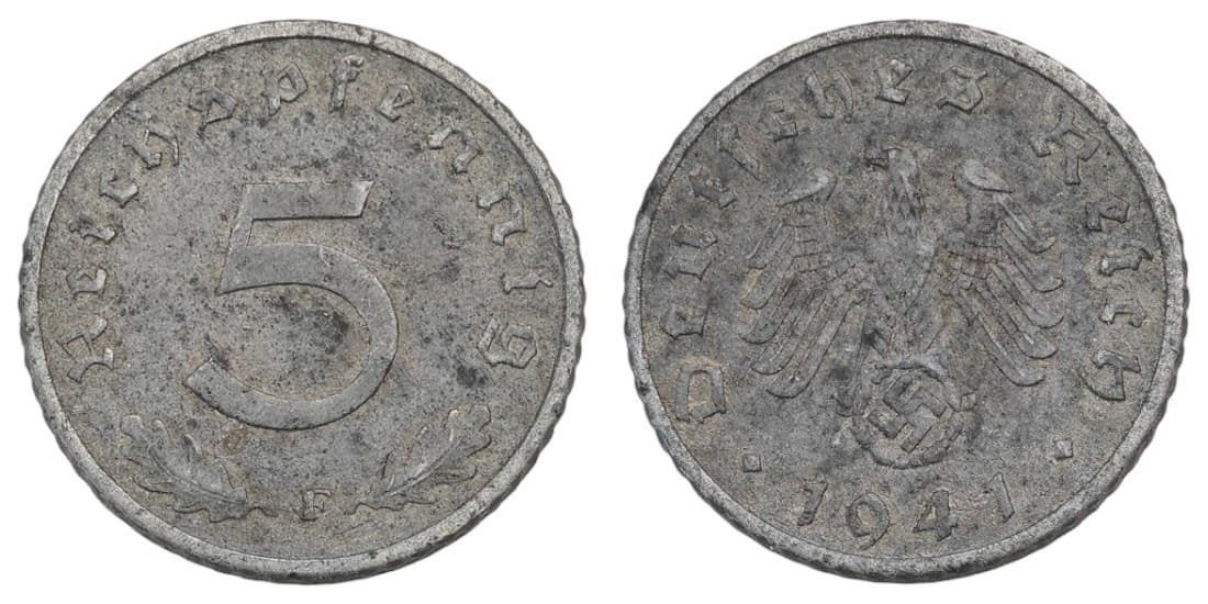 GERMANY 5 reichspfennig 1941F / 3rd Reich / WWII issue / VF