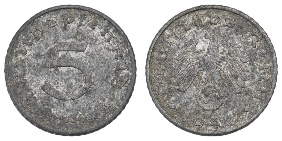 GERMANY 5 reichspfennig 1942A / 3rd Reich / WWII issue / VF