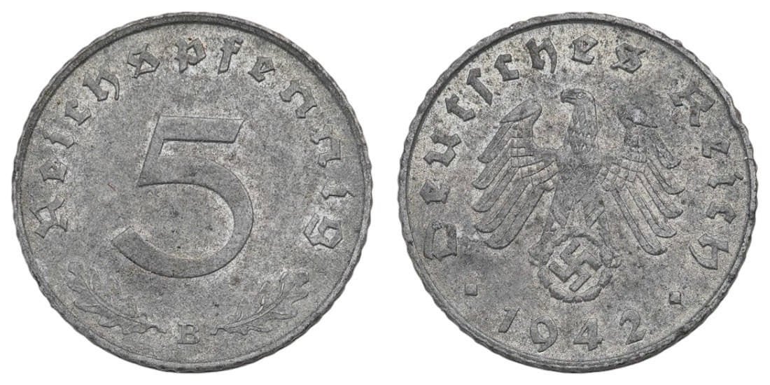 GERMANY 5 reichspfennig 1942B / 3rd Reich / WWII issue / VF