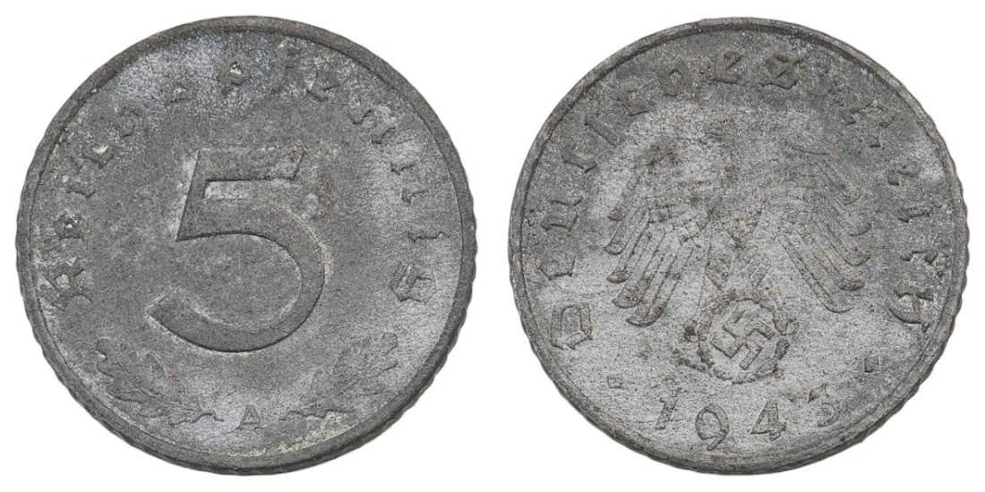 GERMANY 5 reichspfennig 1943A / 3rd Reich / WWII issue / VF