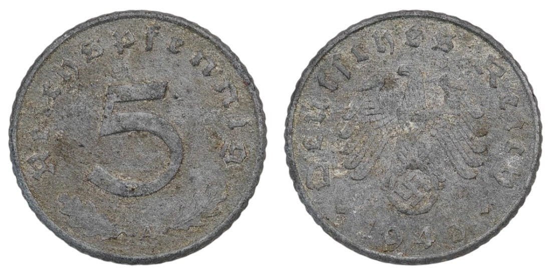 GERMANY 5 reichspfennig 1943A / 3rd Reich / WWII issue / VF