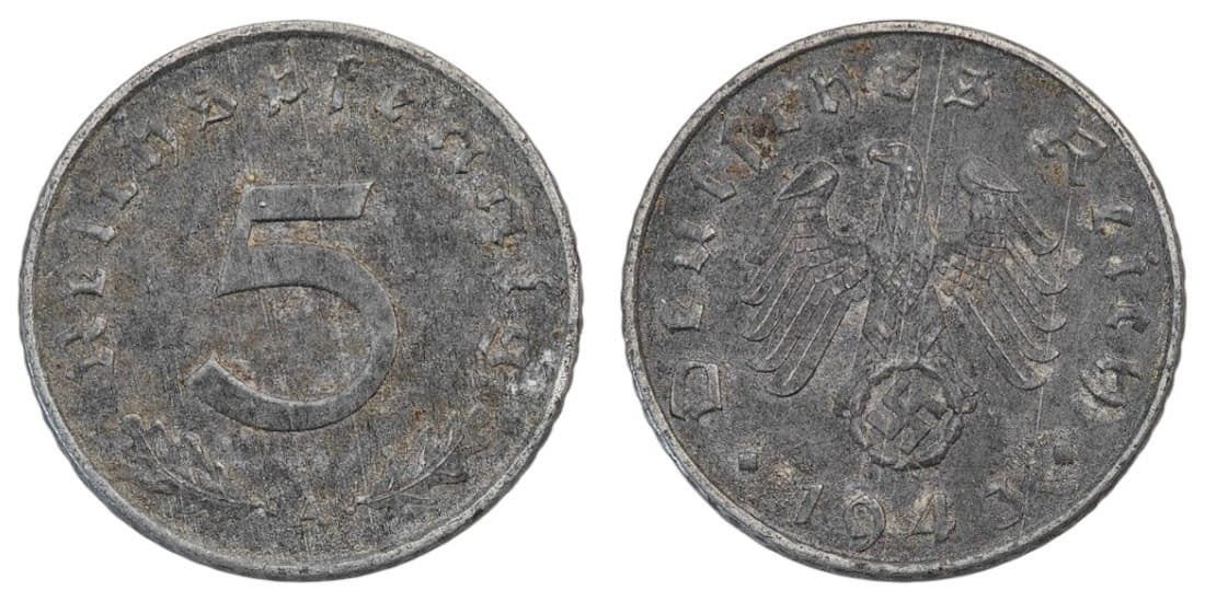 GERMANY 5 reichspfennig 1943A / 3rd Reich / WWII issue / VF