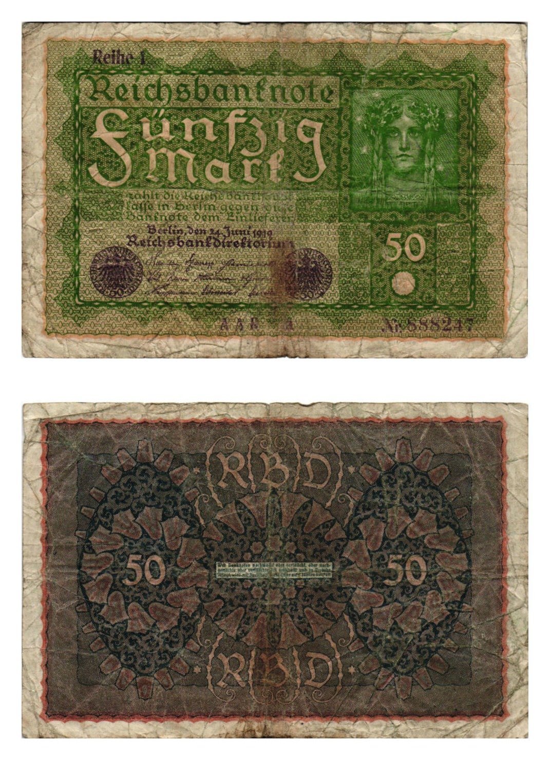 GERMANY 50 mark 1919 / Weimar Republic / Reihe 1 / F