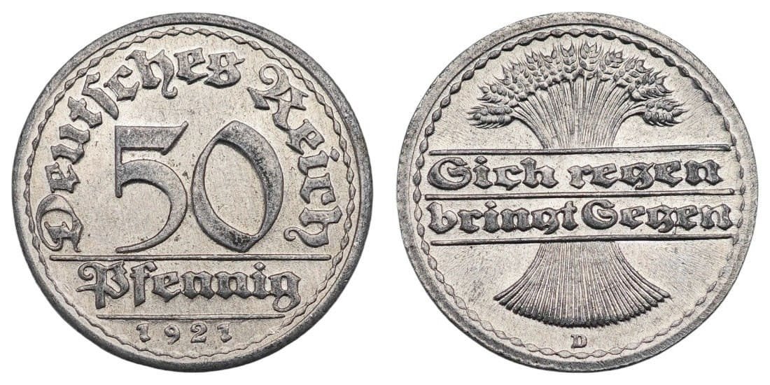 GERMANY 50 pfennig 1921D / Weimar Republic / XF
