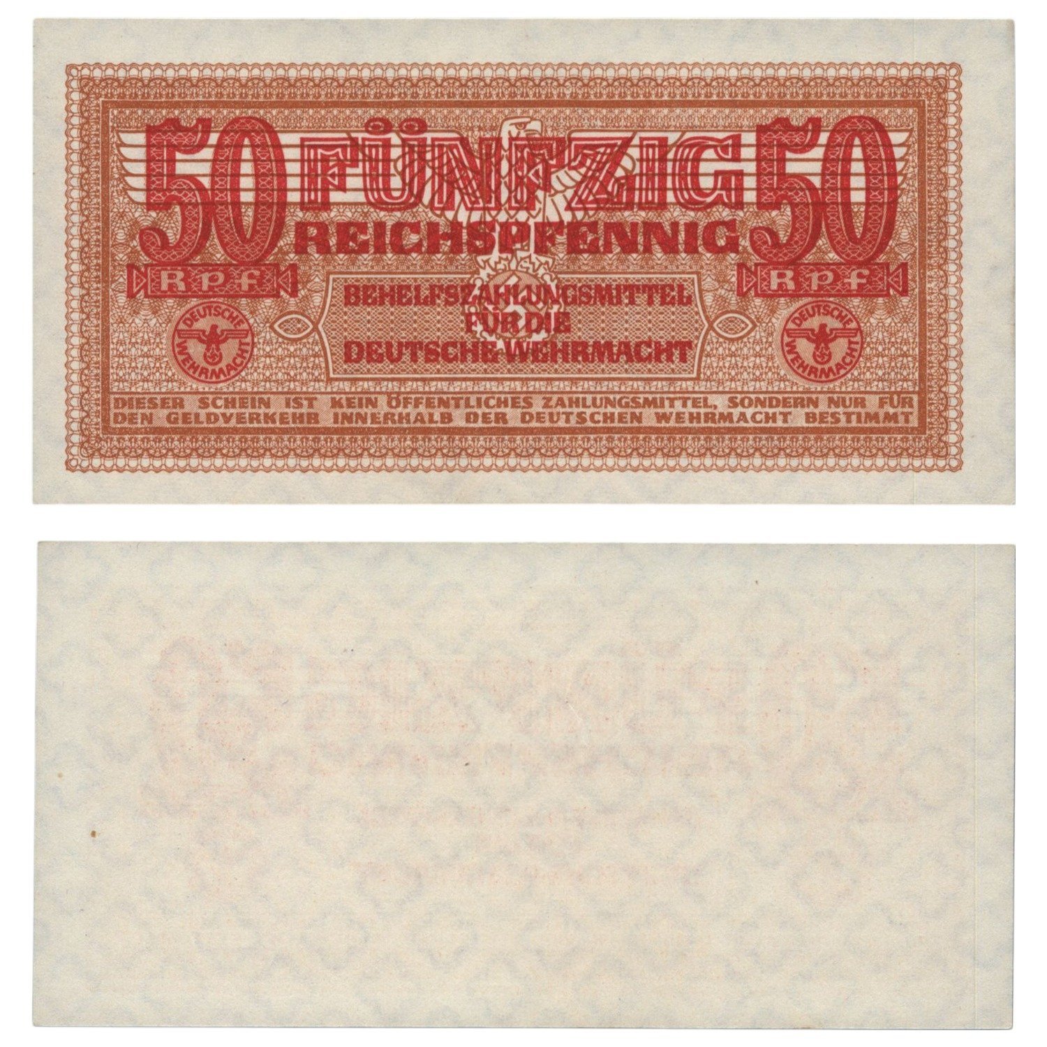 GERMANY 50 reichspfennig ND(1940-1945) / 3rd Reich / Reichskreditkassenschein / WWII issue / UNC