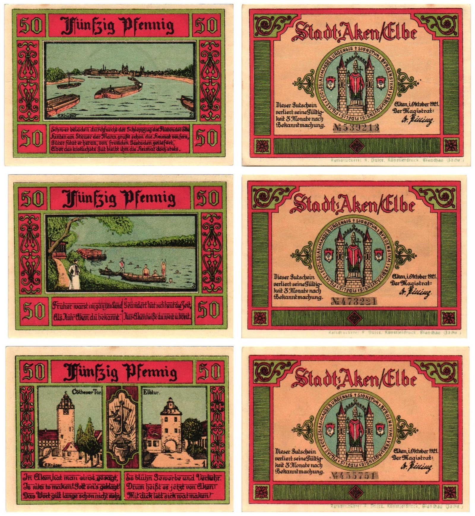 GERMANY Aken / Elbe 1921 local banknotes lot / Notgeld / 3 pcs. UNC
