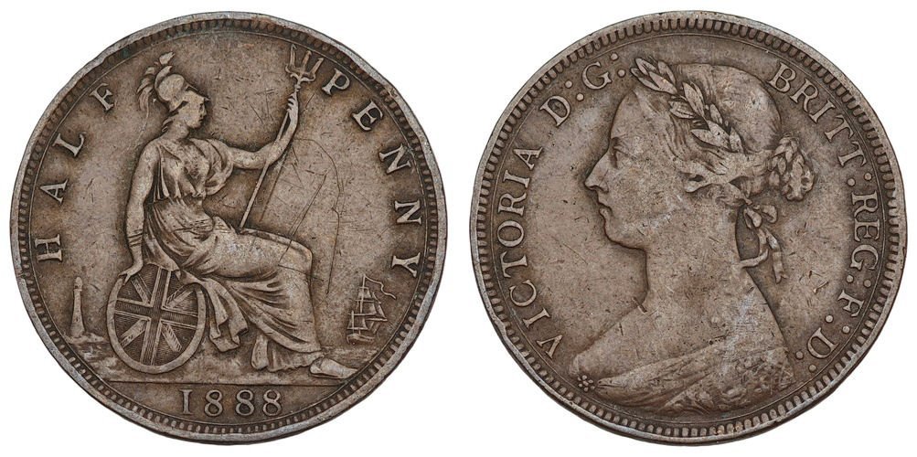 GREAT BRITAIN 1/2 penny 1888 VF