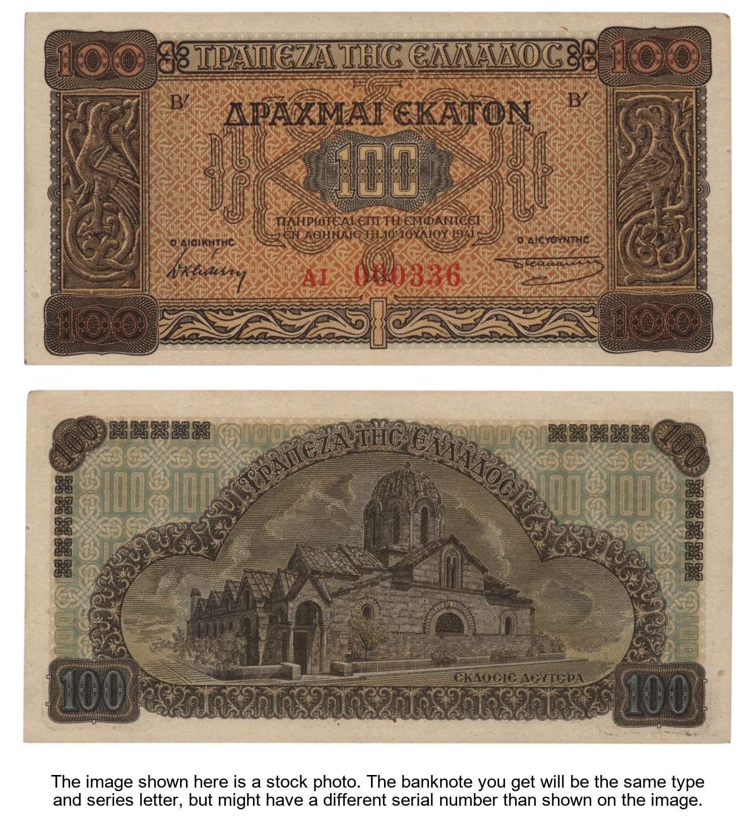 GREECE 100 drachmai 1941 / WWII issue / UNC