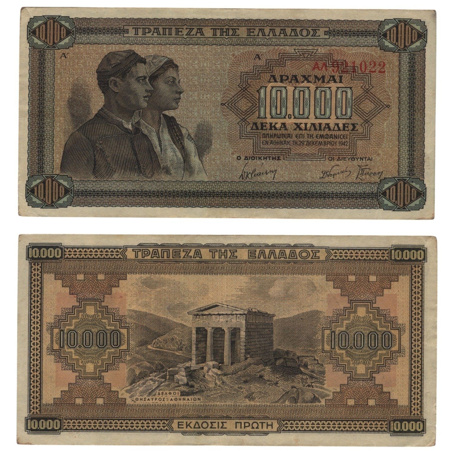 GREECE 10000 drachmes 1942 / WWII issue / VF+