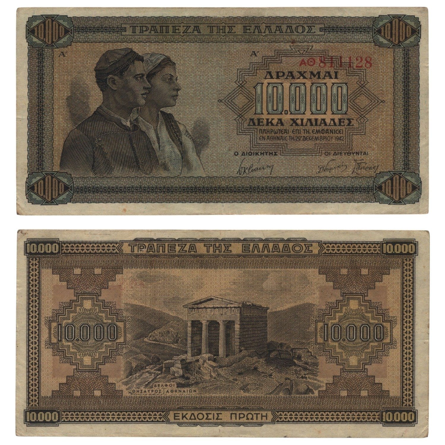 GREECE 10000 drachmes 1942 / WWII issue / VF+