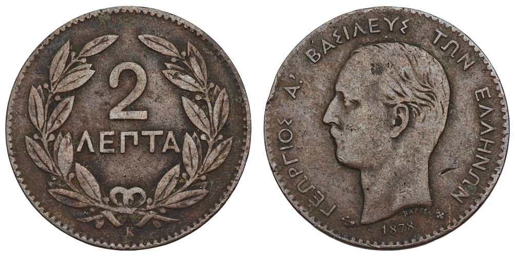 GREECE 2 lepta 1878 VF