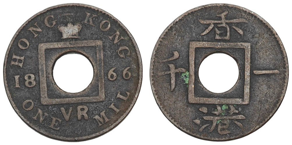 HONG KONG 1 mil 1866 VF