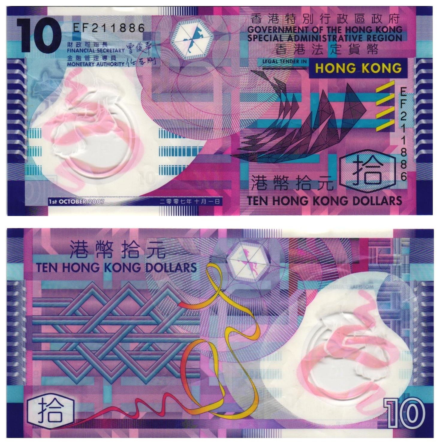 HONG KONG 10 dollars 2007 / polymer plastic / VF+