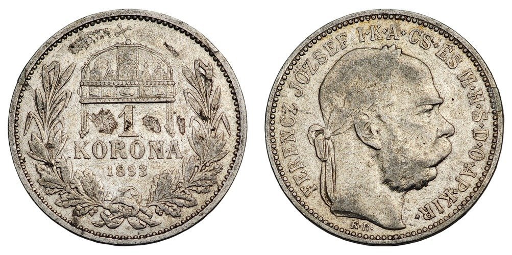HUNGARY 1 korona 1893 / Silver / VF