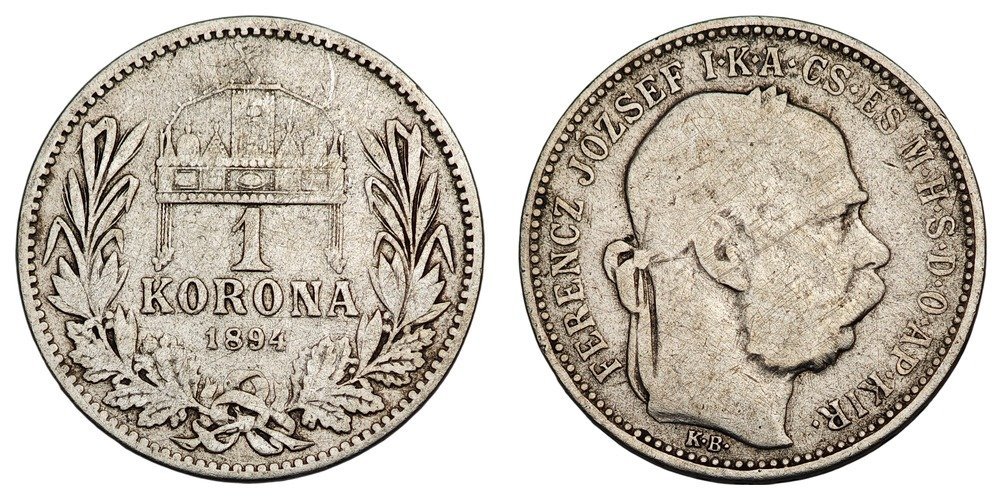 HUNGARY 1 korona 1894 / Silver / F+
