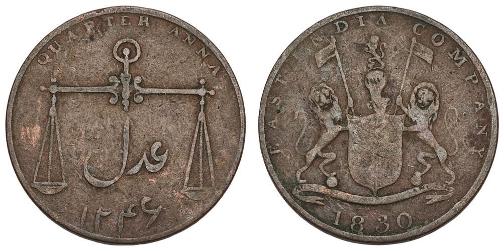 INDIA 1/4 anna 1830 / British / East India Company / VF