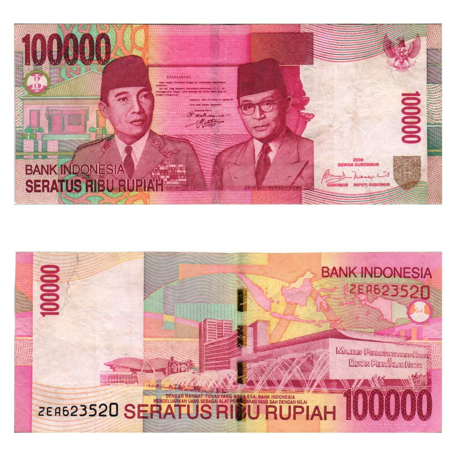 INDONESIA 100000 rupiah 2009 / large tears / VG