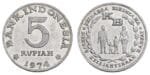 INDONESIA 5 rupiah 1974 / FAO – Family Planning Program / VF