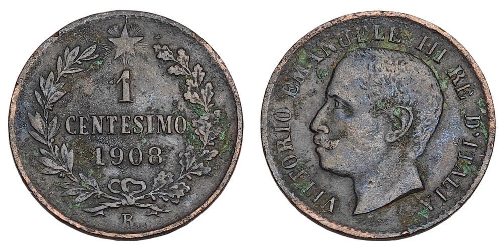 ITALY 1 centesimo 1908 VF