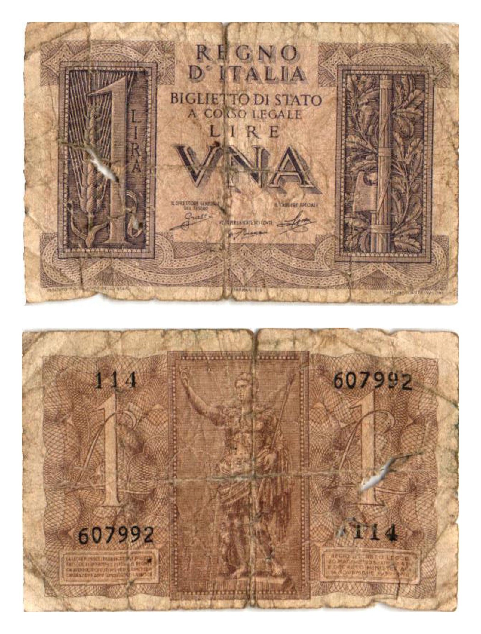 ITALY 1 lira 1944 / tears / F