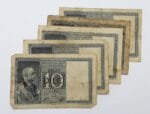 ITALY 10 lire WWII era low grade / banknotes lot / 5 pcs.