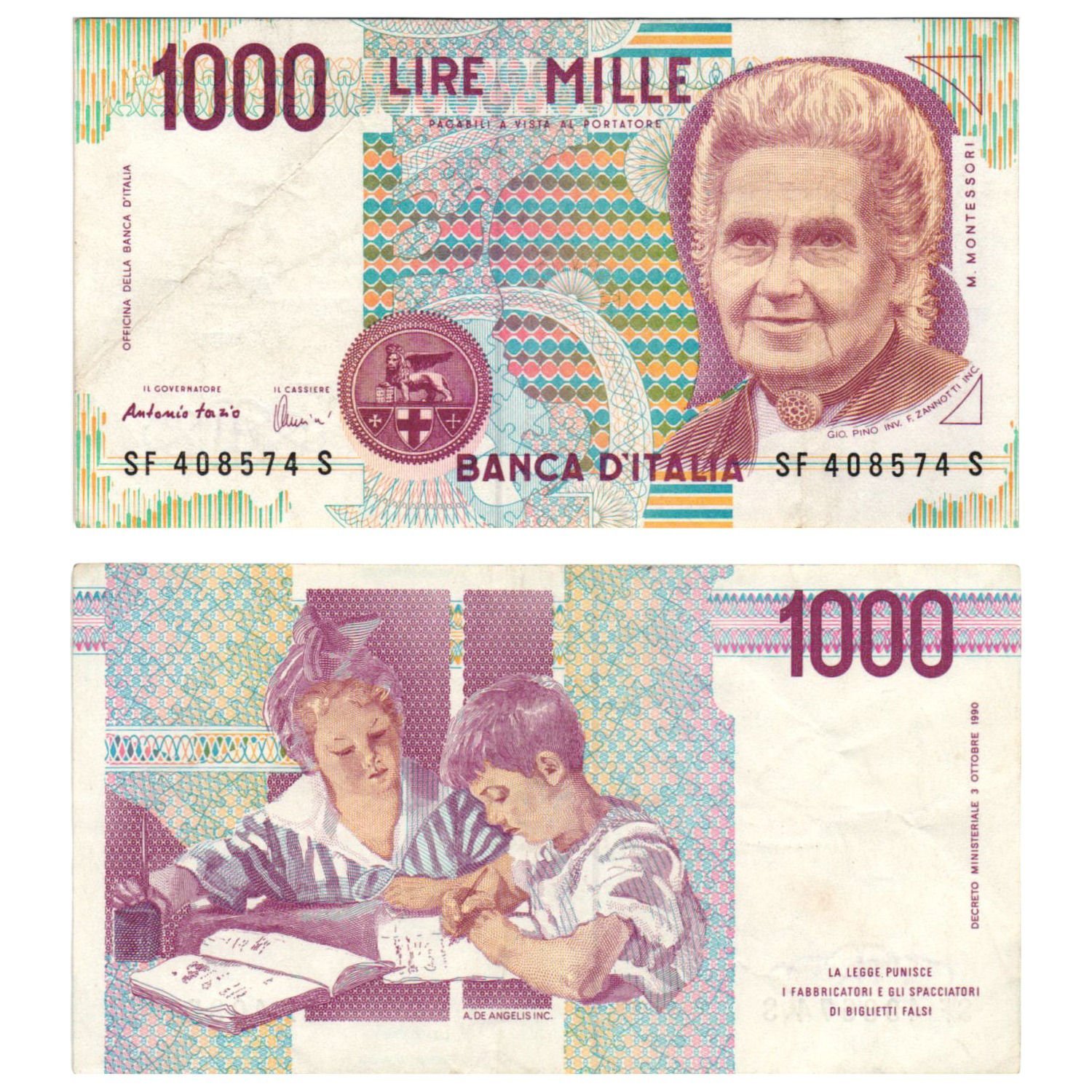 ITALY 1000 lire 1992 VF
