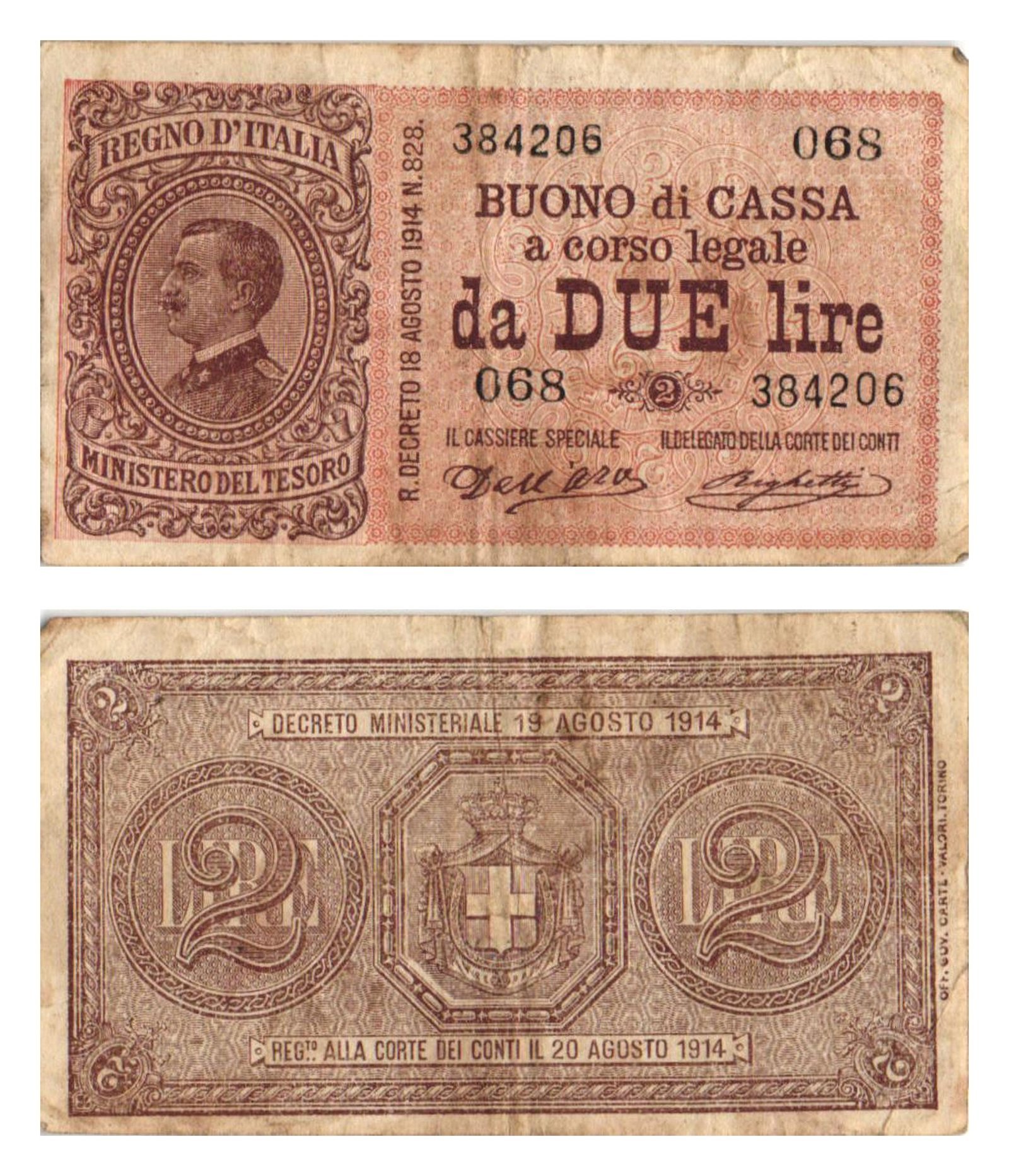 ITALY 2 lire 1914 VF